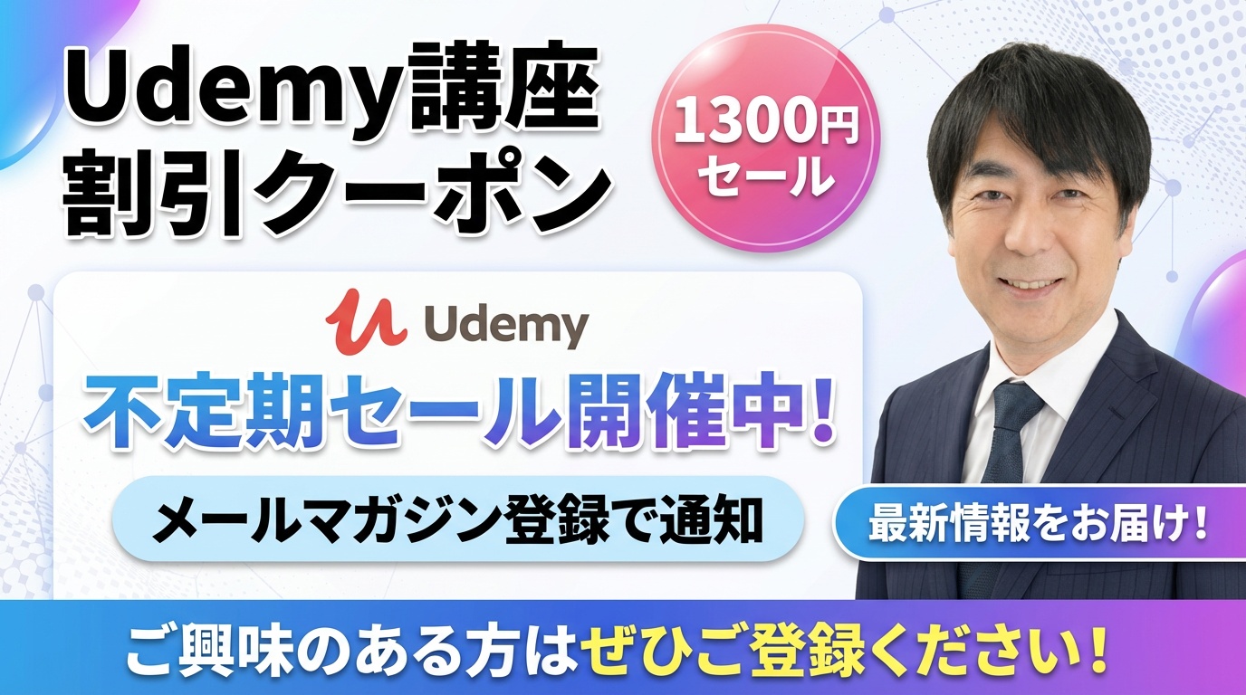 このページでは、私がコースを出しているUdemy講座の割引クーポンをご紹介しています。